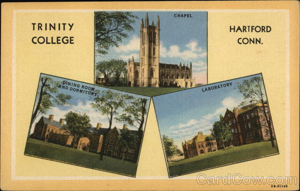 Front: CHAPEL HARTFORD TRINITY CONN. COLLEGE DINING ROOM AND DORMITORY LABORATORY 6 B-H1198 Back: H. P. KOPPLEMANN, PUB. AGENT, HARTFORD, CONN.