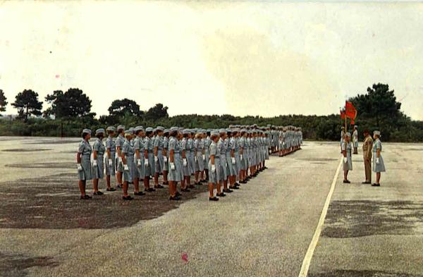 Marine Corps Recruit Depot. A presentation of Guidon during final review at parade deck of the Woman Recruit raining Battalion