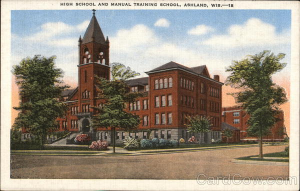 | Ashland, rich in historym the site of the first house built by white men in Wisconsin, is noted for its boys', girls' and adult bands which give weekly concerts. For twenty years, stars of opera and concert stage: Schumann-Heink, MacBeth, Mischa Elman and others, have been brought here. |