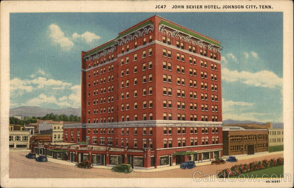 Front: JC47 JOHN SEVIER HOTEL, JOHNSON CITY, TENN. FF FF E 4A-H991 Back: "C.T. ART.COLORTONEā REG.U.S. PAT. OFF.