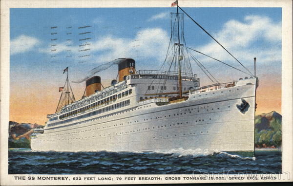 THE SS MONTEREY, 632 FEET LONG; 79 FEET BREADTH; GROSS TONNAGE 19,00o; SPEED 20% KNOTS