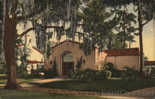 Founded in 1885, Rollins College, Winter Park, Fla. is the oldest institution of higher learning in Florida. Rollins has become famed for its progressive program of education and its beautiful buildings of Mediterranean architecture. Curteich |