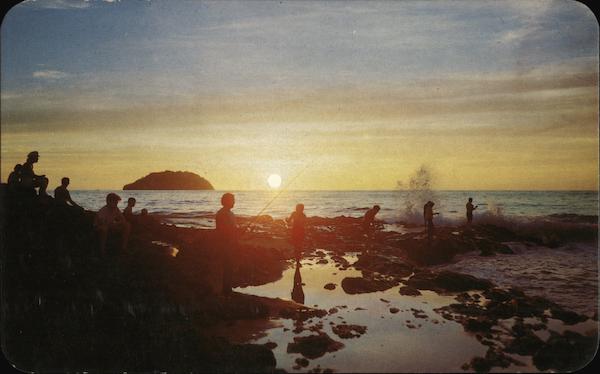Pescadores al atardecer en Mal Paso, Nayarit.
