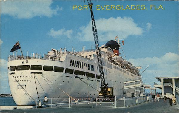 Front: ARMANIA LIVERPOOL Which PORT EVERGLADES, FLA: IAK ****** *** Back: ONE OF THE MANY CRUISE SHIPS nestled at the dock, at Port Everglades, Fla. DUKANE PRESS HOLLYWOOD, FLA DUKANE SCENICS, HOLLYWOOD, FLORIDA 33020 # 2811