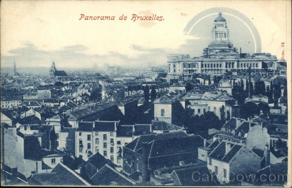 Front: Panorama de Bruxelles. Dess. 34 Back: PEPLA OPOSTES CARTE POSTAL POSTKAAN -6 0121 BELGIEN an 119 VE GENDA 5. (Côte réservé à l'adresse Zijde voor het adres alleen.) Maimoinelle et le refun line www keune in