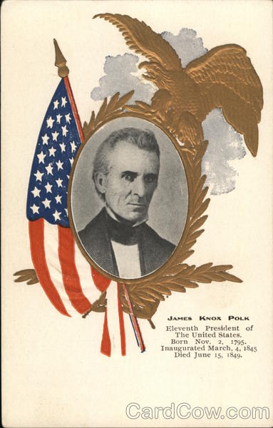 Front: ** JAMES KNOX POLK Eleventh President of The United States. Born Nov, 2, 1795. Inaugurated March, 4, 1845 Died June 15, 1849. Back: HERE, AND CANADA, FOREIGN, Two CENTS,