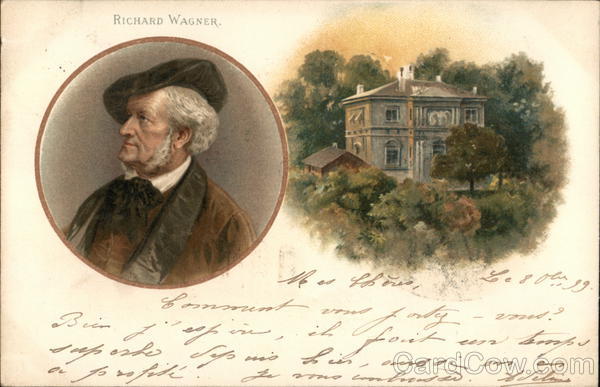 Front: RICHARD WAGNER. Lom Brin necre isn Loit ests mis Ja no contransan looe Back: ** GEN CAPINGAPOSTALE S10 18.9 Ce clité est quluswegent réservé à l'adresse. M4 is 0 OCTA sa kod 5-6 18.3 Maulame zre Brussen Laumont sue leure Pezinta ns les