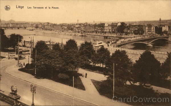 Front: ELS Liége Les Terrasses et la Meuse. mi TELIERED 775817 C Back: bn 17 JELS: toteaux fon Exportion tramways automatiques Teugle potstant manque власtifie Ern. Thill, Bruxelles, série 8, no 26. barrage exchland