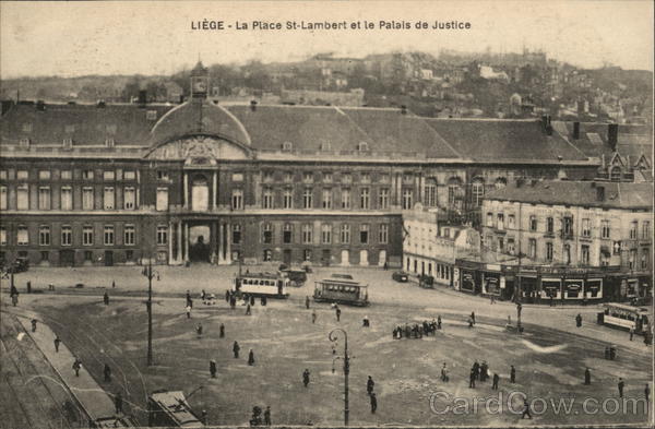 Front: LIÈGE - La Place St-Lambert et le Palais de Justice AMERICAR NA CAFE PROY CIAL DERELBERG CAFE RESTAURANT GP Back: TOB CARTE POSTALE INTERNATIONALE L'Illustration Générale 66 Dép¹" La Carte d'Art ", Bruxelles-Paris