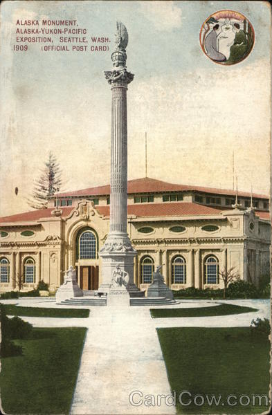 Front: ALASKA MONUMENT, ALASKA-YUKON-PACIFIC EXPOSITION, SEATTLE, WASH. 1909 (OFFICIAL POST CARD) TEEEEEE MANE **** Back: No. X 140 Portlad Post Card Co., Seattle, Washington and Portland, Oregon. Post Gara IS. POS- CAN A DIAN MEXICAN 20