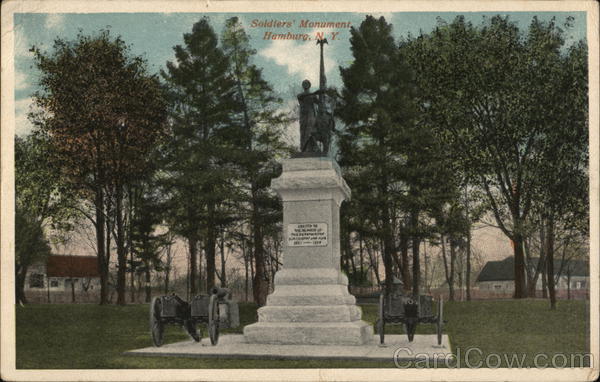 Front: Soldiers' Monument, Hamburg, N, Y. CRECTO 10 THE MEMORY OF THE DEFENOote SUA COVERY ANO FLAK 1861 1868 SED Back: Fair я 1915 Потвид пу 41762 завод Hamburg TOCHROME SI 19 AM NE GEVARIE R тека 9чев Деан 416 South Fremont Los Angeles ali
