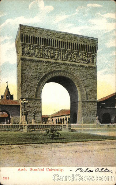 Front: 5219 ** Arch, Stanford University. Palo Alto. Back: COMMUNICATIONS PCK 12 1. for andd 2 c. for abroad