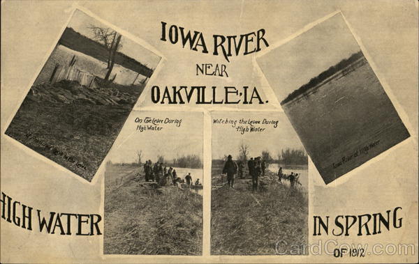Front: Kim the lips (**) HIGH WATER IOWA RIVER NEAR OAKVILLE IA On The levee During High Water Watching the Levee During High Water TE lawa River at High Water IN SPRING OF 1912 Back: 25410 NM Domestic and Two Cents
