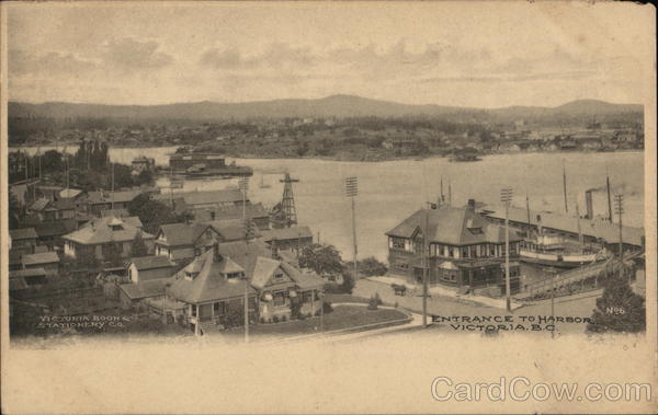 Front: VICTORIA BOOK & STATIONERY CO, planee ENTRANCE TO HARBOR VICTORIA.B.C. NÂș6 Back: This space is for the and U.S. Two Cents.