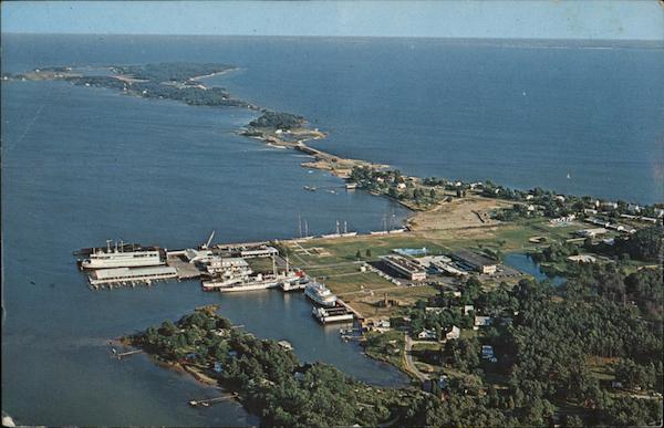 | Aerial view showing the School in the foreground, Potomac River (upper right) and St. George Island in the distance. Sponsored by the Seafarers International Union, the School is the largest training facility for merchant seamen in the U.S., and one of the nation's most unique educational institutions. |