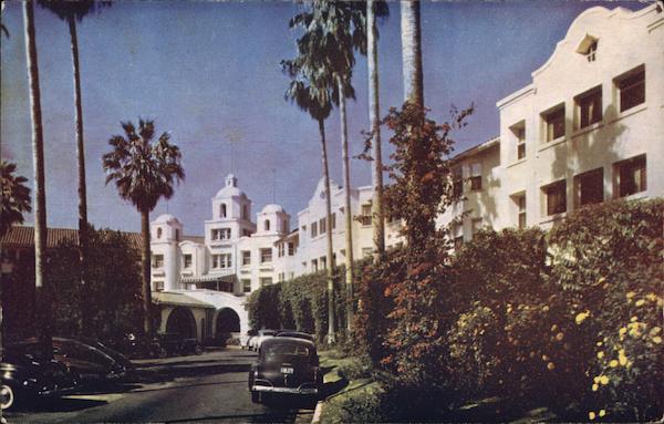 C579-Palm-lined drive of the beauti- ful Beverly Hills Hotel in Beverly Hills, California. #5-9 Coloropp Kodachrome Reproduction by Mike Roberts Studios Berkeley 2, California 49
