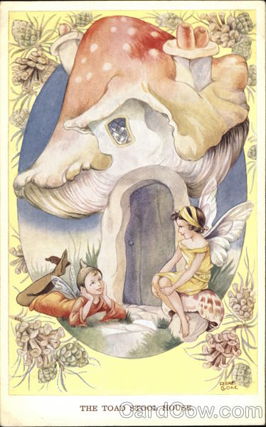 Front: // THE TOAD STOOL HOUSE. LLOKE Back: "RENE CLOKE" FAIRY SERIES. COPYRIGHT. PUBLISHED BY VALENTINE & SONS LTD., DUNDEE AND LONDON. 5105 GT. BRITAIN Valentine's CARD