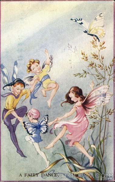 Front: A FAIRY DANCE. DANCE. say $890 13 RENE ROKE Back: COPYRIGHT. "RENE CLOKE" FAIRY SERIES. PUBLISHED BY VALENTINE & SONS LTD., DUNDEE AND LONDON. Valentine's 5572 GT. BRITAIN