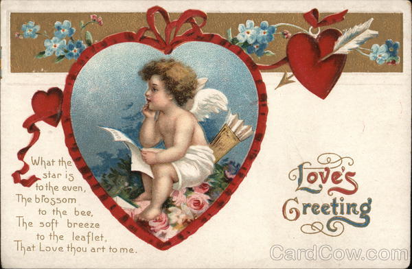 Front: What the star is to the even, The blossom to the bee, The soft breeze ORDE to the leaflet, That Love thou art to me. Love's Greeting Back: WRITE HERE HERE.