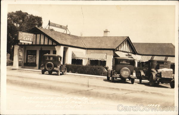 Front: ANDERSEN'S ELECTRICAL CAFE SODA-CIGARS-CANDY TMARUAT23 O ADGE BUELTMORE HOTEL Bueltmore Hotel Cafe- Home of Split pea soup RESTAURANT 12269 part Back: PLACE ( HERE