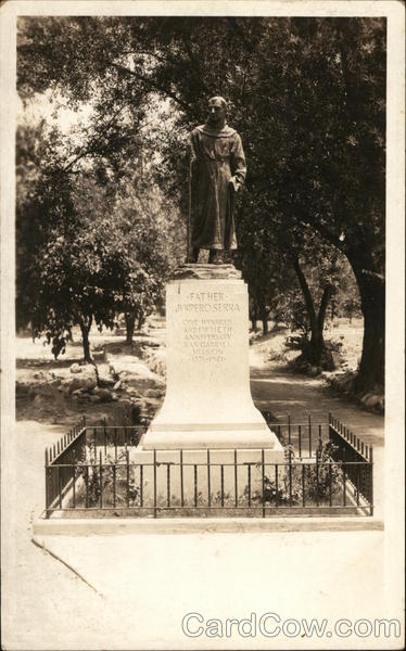 Front: wi FATHER. JVNIPERO SERRA ONE HYNDRED AND FIFTIE TH ANNIVERSARY SAN GABRIEL MISSION 1771-1921- Back: Pub. by Frasher's, Inc., Pomona, Calif. AZOR NO <NO.