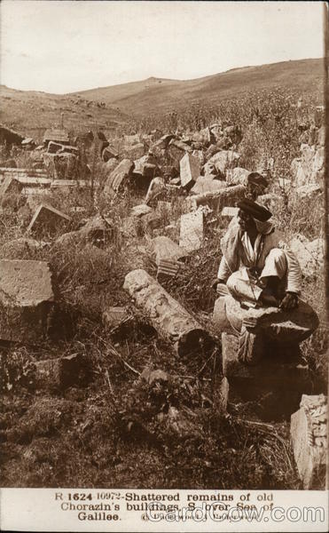Front: R-1624-10972-Shattered remains of old Chorazin's buildings, S. over Sea of Galilee. © Underwood & Underwood. Back: PALESTINE ALAMEDA COUNTY LIBRARY