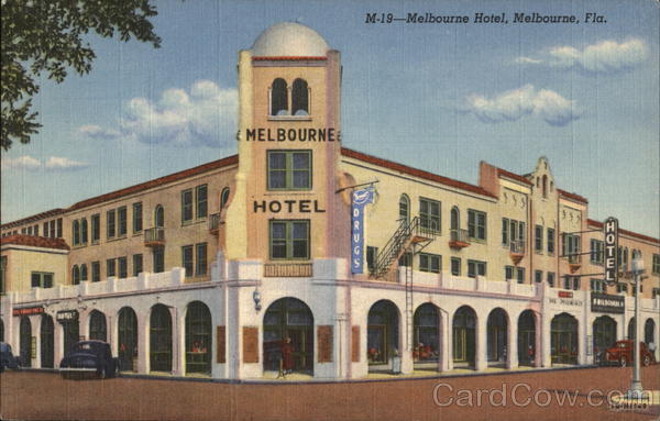 Front: M-19-Melbourne Hotel, Melbourne, Fla. MELBOURNE ME MiIN AOTELE IB-HI149 HOTE DRUGS Back: ORANGE NEWS CO., ORLANDO, FLA.