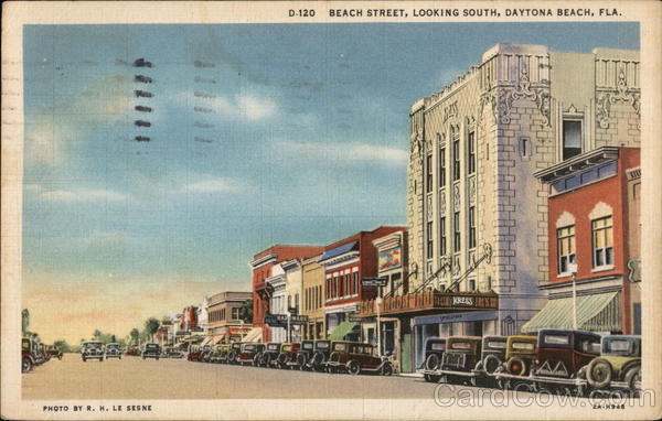BEACH STREET, LOOKING SOUTH, DAYTONA BEACH, FLA.
