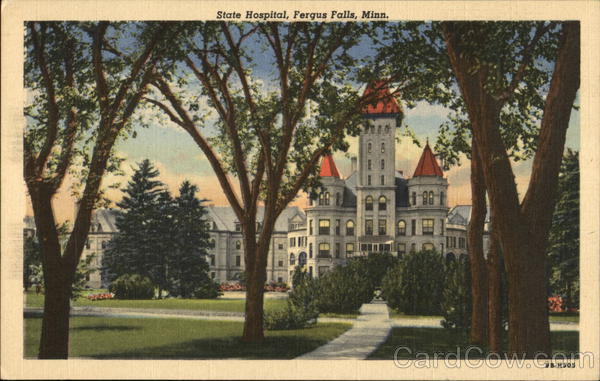Front: State Hospital, Fergus Falls, Minn. 9B-H505 Back: NORTHERN MINNESOTA NOVELTIES, CROSSLAKE, MINN.