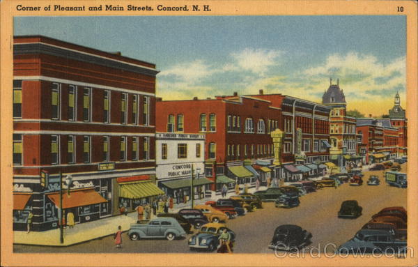 Front: Corner of Pleasant and Main Streets, Concord, N. H. 10 [II瓜D CONCORD 11 Prm PUBLIC MARK డి. 75910 Back: "TICHNOR QUALITY VIEWS" REG. U. S. PAT. OFF. MADE ONLY BY TICHNOR BROS., INC., BOSTON, MASS, Aug 55