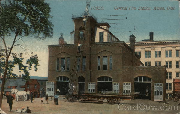 Front: Do 400 17 10850. Central Fire Station, Akron, Ohio 5 Back: Pub. by The Acmegraph Co., Chicago, 4-RM 1916 JUG OTHE s is some place. Alin PRULLE CEN! Miss Aline Sehn 329 Meadow St. Youngstown, 1000