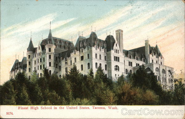 Front: 5174. Finest High School in the United States. Tacoma, Wash. Back: COMMUNICATIONS PCK TO 1c. for 2 c. for abroad Miss Charlotte Gregory 3350