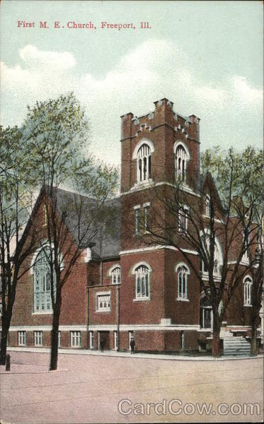 Front: First M. E. Church, Freeport, Ill. 15518 H Back: W. C. Ruch, Importer & Publisher, Freeport, Ill. THIS SPACE FOR WRITING THIS SPACE FOR THE ADDRESS Domestic 1 c. Foreign 2 c. 100 مع في