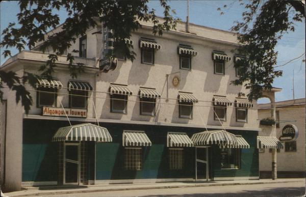 Large Modern Hotel in the famed Gatineau hunting and fishing district. Excellent cuisine, dancing and entertainment in the "Algonquin Lounge." Grand Hotel moderne dans le fameux district de chasse et peche de la Gatineau. Excellente cuisine; Danse tous les soirs; "Algonquin Lounge". Mike Roberts |