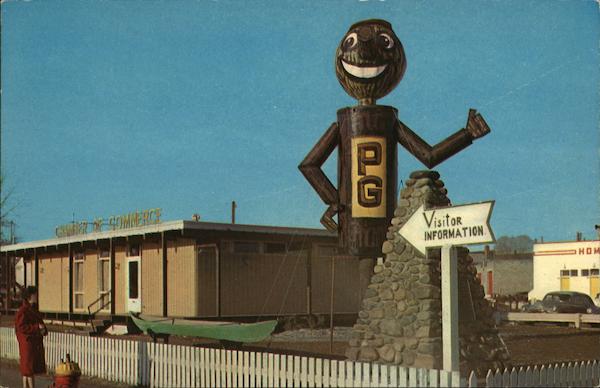 Wooden Mr. PG, symbolic of the lumber industry in the