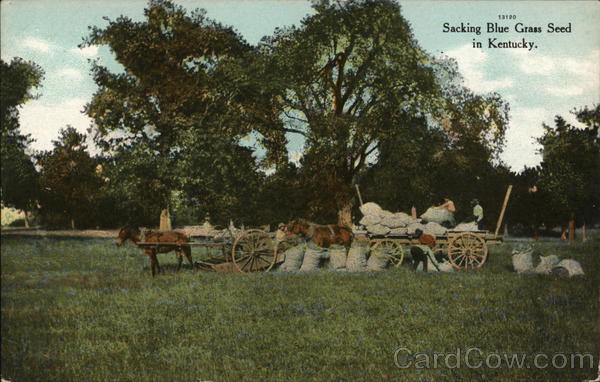 Front: 13120 Sacking Blue Grass Seed in Kentucky. S Back: 10- AGRICULTURE - COMMERCE - HORSE DRAW. WRENN & KING, IMPORTERS & MANUFACTURERS, LEXINGTON, KY. PHOTO BY KNIGHT. RENTZARY cma 1910-201 000000O AFR TWO CENTS