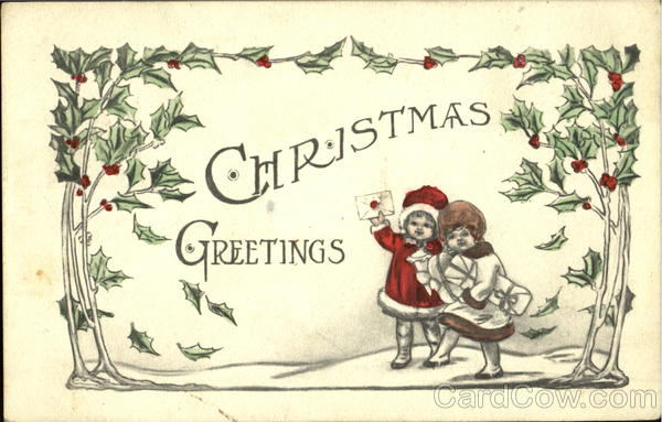 Front: CHRISTMAS GREETINGS Back: KINS PO DEC22 NY 1916 Delora new year and a Happy Christinas You a Merr wishing Mies Eva Kimble Horseheads R F D J 21.7.