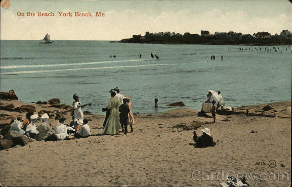 Front: On the Beach, York Beach, Me. fami 44 TOO 210120. Jy Back: Published by The Valentine & Sons Publishing Co., Ltd., New York and Boston THROUGHOUT THE WORLD SNOS. 8 FA CARD. FAMOUS РТС