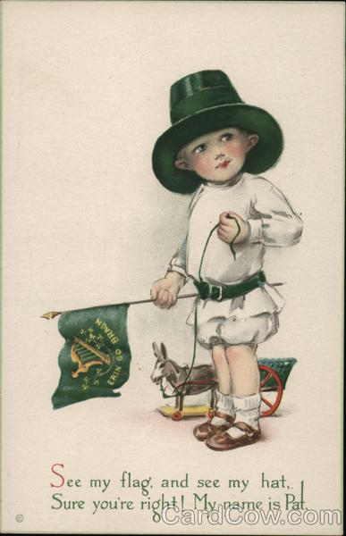 Front: BRAGH ERIN GO e my flag, and see my hat.. Sure you're right! My name is Pat. Back: St. Patrick's Series No. 40 COPR.E.NASH