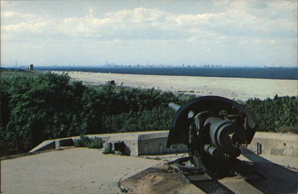 | Gateway National Recreation Area Sandy Hook Unit Highlands, New Jersey Overlooking the New York skyline, this coast artillery weapon, located in historic Fort Hancock, is a reminder of the role Sandy Hook played in the defense of New York Harbor. |