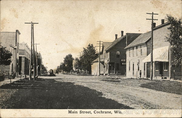 Front: (1) CA Main Street, Cochrane, Wis. 去 Back: PUB. FOR G. M. ROHRER, COCHRANE, WIS. Post bard GREAT BRITAIN FOREIGN: AS IS 21. 2