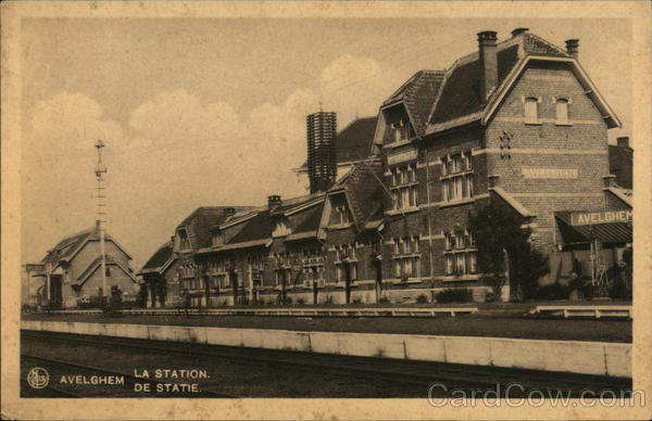 Front: AVELSHEM |||| HELS AVELGHEM LA STATION. DE STATIE. HAVE 101 AVELGHEM AVELGHEM Back: Oluguuste 28-5-14 PELGIQUE 10 Na BELGIE Or: Henri Briquet Chaussée de GrandL 382 Bruseciles. موسى