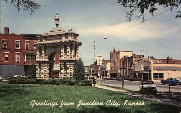 Front: GOOD EATS CAFE Greetings from Junction City, Kansas Back: CITY PARK & MAIN STREET Junction City, Kansas P88879 .......Dunlap-Henline Co., 7603 Cass St., Omaha, Nebr. Kastichrome © COLOURPICTURE BOSTON, MASS. 02130