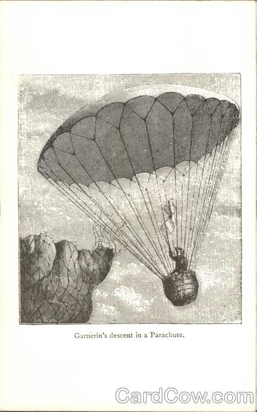 Front: ENTRUL 35 Garnerin's descent in a Parachute. Back: KEAN HISTORICAL POSTCARD, 49 No. 17TH ST., PHILA. 3, PA. --Kodak-- Paper 1