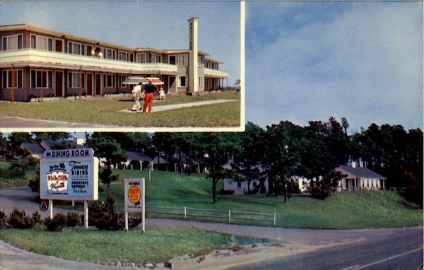 View of quaint Cape Cod Cottage style living units along Route #3 and the luxurious Pylon accommodations, overlooking Cape Cod Bay. Two Miles North of Sagamore Bridge on Route #3 Plymouth.