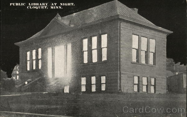 PUBLIC LIBRARY AT NIGHT, CLOQUET, MINN.
