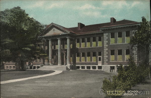 Front: [] NEW PUBLIC SCHOOL, PLEASANT RIDGE, 0. Back: The Norwood Souvenir Co, Cincinnati, O. Hope this will find pour all well. Are you still Pls leaching school. "With Love & best wishes from all to you & your mother. مة 50 کی m