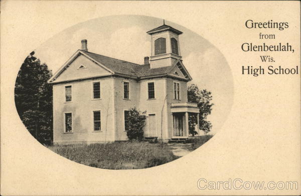 Front: Greetings Glenbeulah, Wis. High School Back: Place the Stamp He One Cent for United States an Island Possession: Cuba, Canada an for Foreign. тулей Витий сит il 500 09 2595