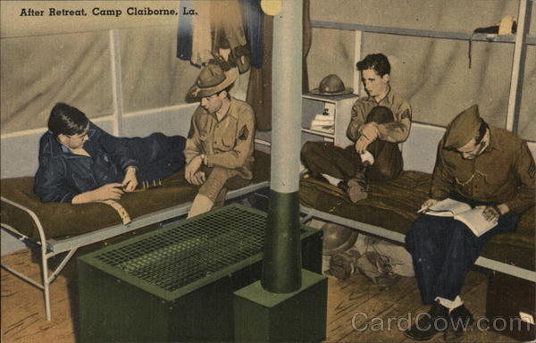 Front: After Retreat, Camp Claiborne, La. H. Back: MADE IN U, S. A 300 TICHNOR QUALITY VIEWS" REG. U.S. PAT, OFF. MADE ONLY BY TICHNOR BROS., INC., BOSTON, MASS. 71250 PUB, BY RED RIVER NEWS CO.. ALEXANDRIA, LA,