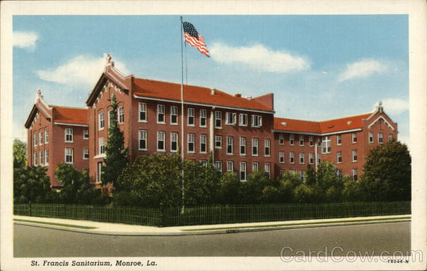 Front: LEE 円円IAAEREC od St. Francis Sanitarium, Monroe, La. 1B248-N Back: MONROE NEWS AGENCY, MONROE, LA. MONROE, LOUISIANA-"THE HEART OF THE WORLD'S LARGEST GAS FIELD" 200